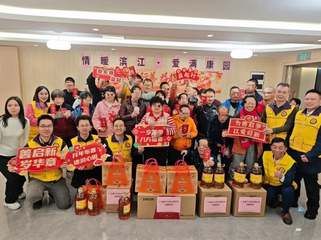 新春将至,狮爱暖冬。2026念2月4日,广东狮子会快乐服务队携手爱心企业广州特域机电有限公司联合开展新春慰问活动,为海珠区滨江街康园工疗站学员送去节日关怀与慰问物资。活动旨在让学员们在2026年春节前夕感受社会温暖,度过一个祥和、欢乐的佳节。会员们与学员欢聚互动,将暖心祝福传递给每一位在场人员。